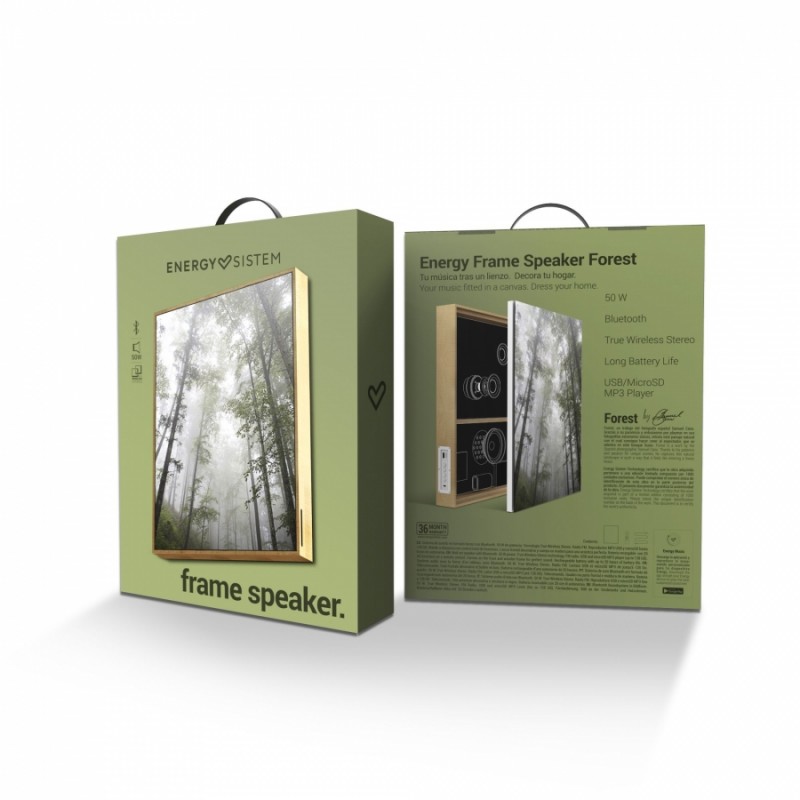 Potente altavoz tras un lienzo exclusivo con marco de madera, la combinación entre arte y música para integrarse con el resto de la decoración de tu casa. Sorpréndete con sus 50 W de potencia, tecnología Bluetooth 5.0, TWS y reproductor MP3 USB y microSD.
