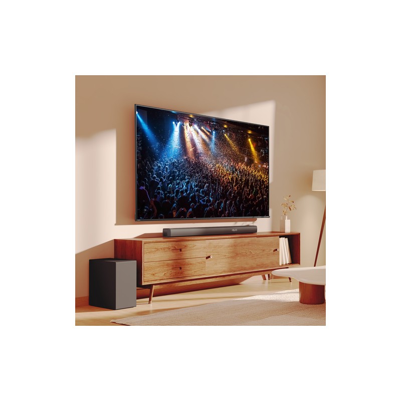 Hisense HS3100. Canales de salida de audio: 3.1 canales, Potencia estimada RMS: 480 W, Decodificadores incorporados: DTS Virtual:X, Dolby Digital. Potencia de la barra de sonido del altavoz RMS: 180 W. Tipo de subwoofer: Altavoz de subgraves (subwoofer) activo, Conectividad del altavoz de subgraves (subwoofer): Inalámbrico, Potencia RMS de subwoofer: 180 W. Color del producto: Negro. Tecnología de conectividad: Inalámbrico y alámbrico