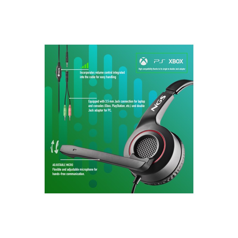 AURICULAR STEREO DE ALTA CALIDAD CON MICRÓFONO AJUSTABLE. CONEXIÓN JACK 3.5MM Y ADAPTADOR DOBLE JACK