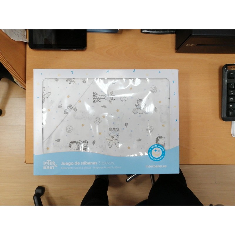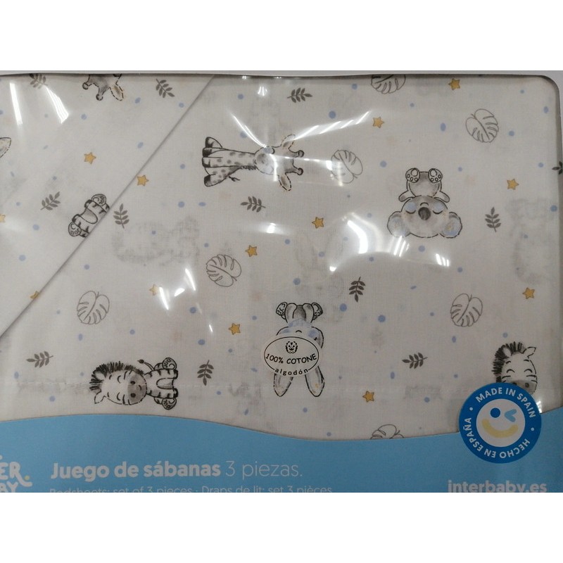 Juego Sábanas de Minicuna Koala en blanco azul. 100% algodón