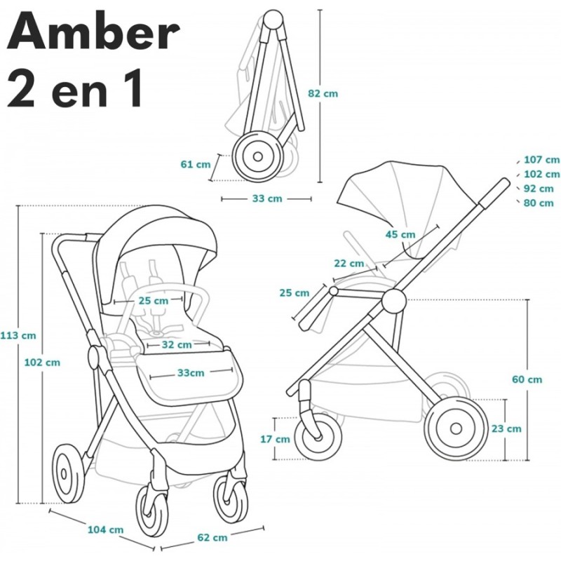 LIONELO Amber Coche de bebé multifuncional 2 en 1 Conjunto silla de paseo con el Asiento de Cubo e Capazo Manillar regulable Bolsa Mosquitero Protector de lluvia - -Km.0-