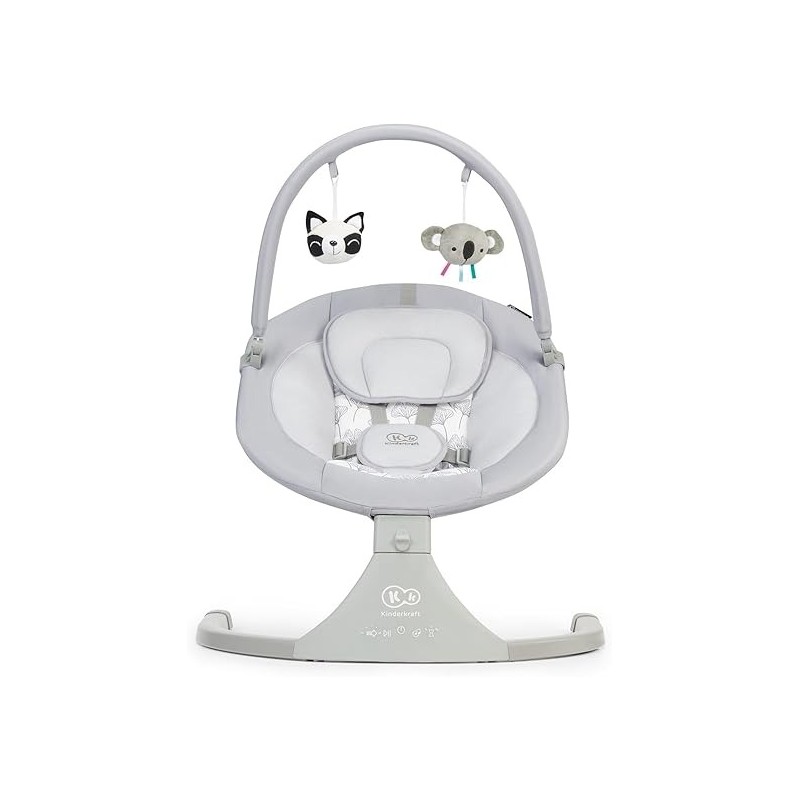 Kinderkraft LULI Hamaca bebé, Eléctrica Silla macedora, Columpio bebe, Balancin para bebés 0-9 kg, Balanceo automatico 5 Velocidades, Arco regulable, 12 melodias, , Gris - -Km.0-