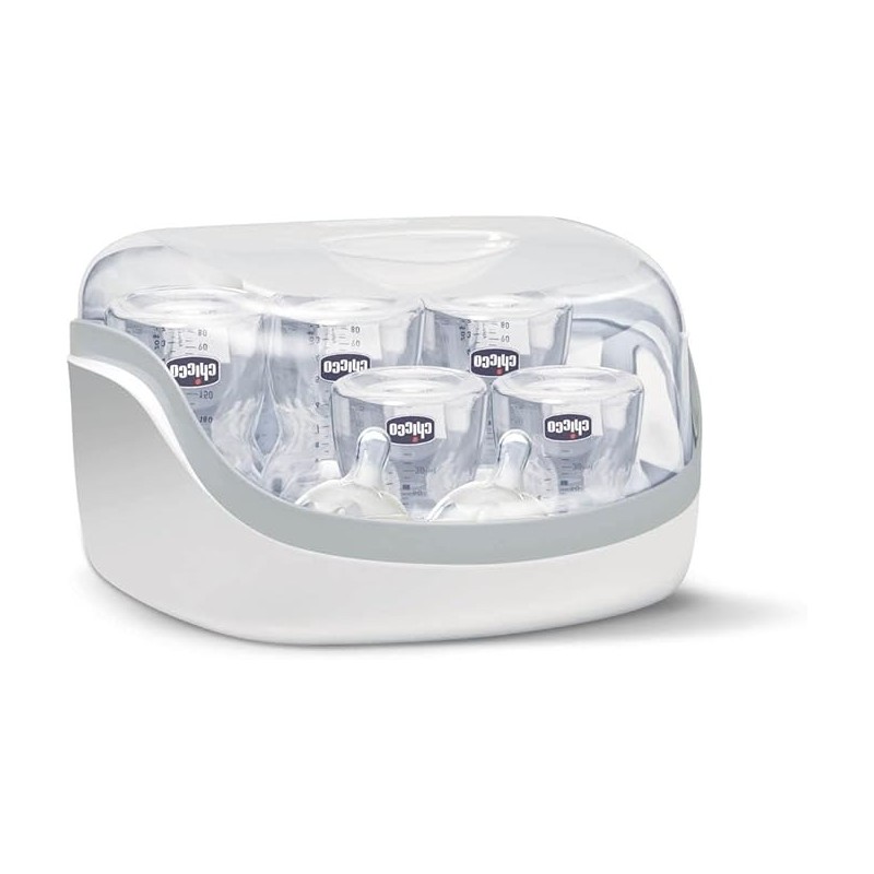 Chicco - Esterilizador para microondas de vapor, rápido y fácil de usar, hasta 6 Biberones, chupetes, tetinas y otros accesorios, color Gris - -Km.0-