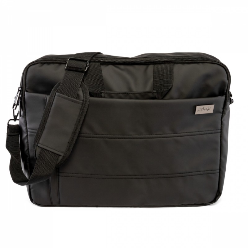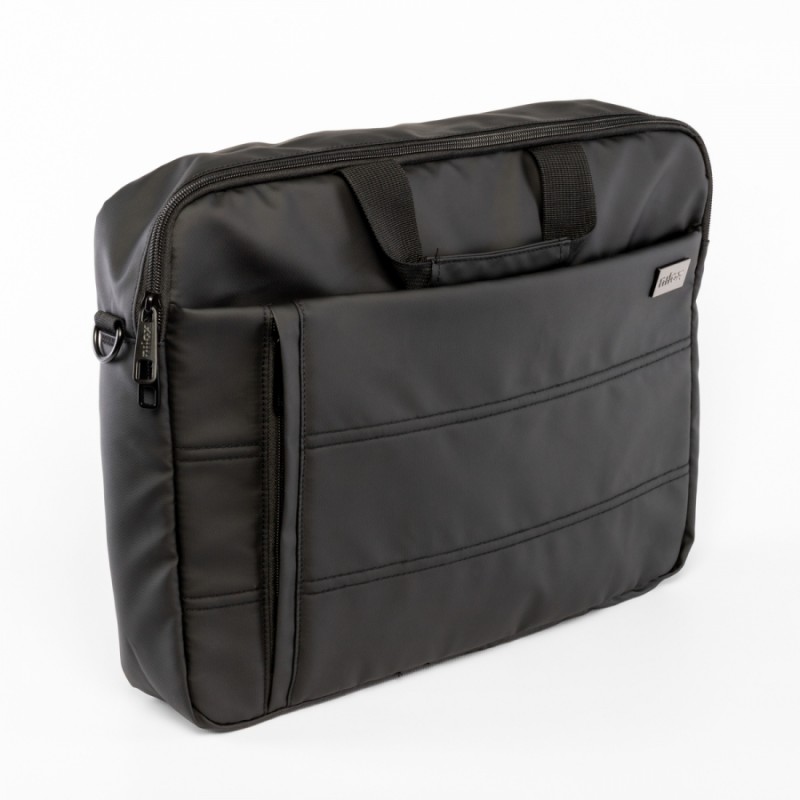 - Maletín para portátiles de hasta 15.6 " de color negro. Sus tres amplios compartimentos te permitirán llevar contigo tu laptop y todos los accesorios que necesites para tu trabajo de manera ordenada.
