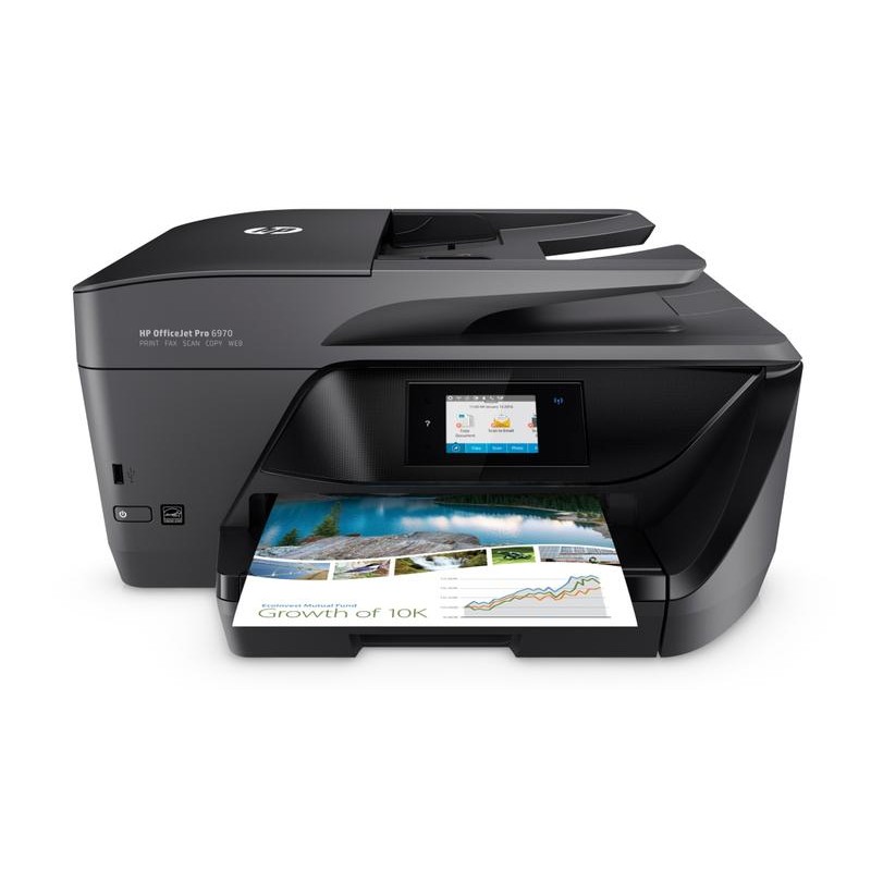HP OfficeJet Pro Pro 6970 AiO. Tecnología de impresión: Inyección de tinta, Impresión: Impresión a color. Resolución máxima: 600 x 1200 DPI, Velocidad de impresión (color, calidad normal, A4/US Carta): 11 ppm. Copiando: Copia a color. Resolución máxima de copia: 600 x 600 DPI. Escaneando: Escaneo a color. Resolución óptica de escáner: 1200 x 1200 DPI. Enviando por fax: Fax a color, Funciones dúplex: Imprimir. Tamaño máximo de papel ISO A-series: A4. Capacidad de entrada estándar: 225 hojas. Capacidad de salida estándar: 60 hojas. Wifi. Impresión directa