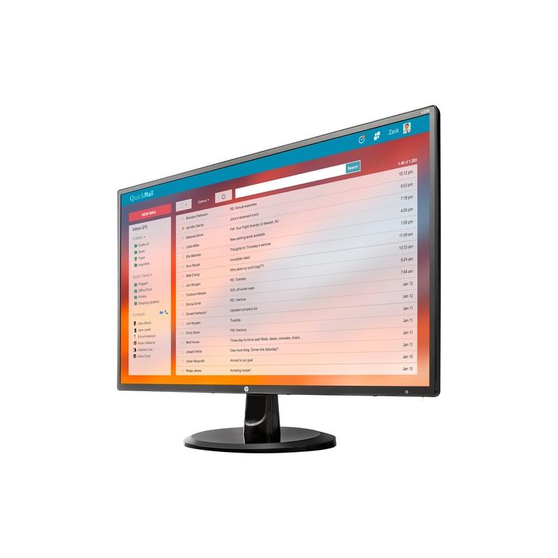 HP V270. Diagonal de la pantalla: 68,6 cm (27"), Resolución de la pantalla: 1920 x 1080 Pixeles, Tipo HD: Full HD, Tecnología de visualización: IPS, Tiempo de respuesta: 5 ms, Relación de aspecto nativa: 16:9, Ángulo de visión, horizontal: 178°, Ángulo de visión, vertical: 178°. montaje VESA. Certificado Energy Star, Color del producto: Negro