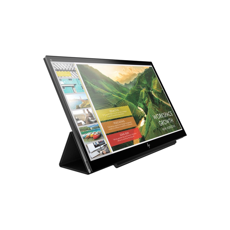HP EliteDisplay S14. Diagonal de la pantalla: 35,6 cm (14"), Resolución de la pantalla: 1920 x 1080 Pixeles, Tipo HD: Full HD, Tecnología de visualización: LED. Pantalla: LED. Superficie de la pantalla: Mate, Tiempo de respuesta: 5 ms, Relación de aspecto nativa: 16:9, Ángulo de visión, horizontal: 178°, Ángulo de visión, vertical: 178°. Certificado Energy Star, Color del producto: Negro