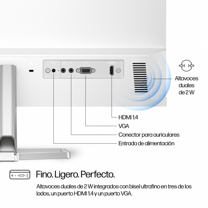 Sumérgete en cualquier proyecto que te apasione con el monitor FHD HP serie 5 de 23,8 pulgadas con altavoces. Su diseño elegante con audio dual integrado de 2 W te proporciona la flexibilidad para disfrutar plenamente del entretenimiento, mientras que los colores intensos y la gran relación de contraste te permitirán visualizar todo como debe verse. Mejora el tiempo en pantalla y de entretenimiento con una mayor velocidad de actualización[1] para una experiencia sin retrasos.