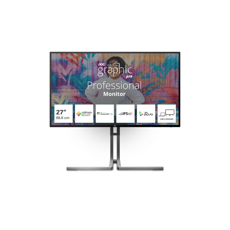 El AOC Graphic Pro U27U3CV proporciona una precisión de colores excepcional desde el primer momento, gracias a su calibración por hardware que alcanza Delta E < 2 (sRGB). Ajuste la configuración sin esfuerzo con la característica Calman Ready para obtener un rendimiento óptimo. Con el 98 % de cobertura del espacio de color DCI P3 y 100 % de los espacios de color sRGB y Rec. 709, es ideal para la edición de gráficos y fotografías y ofrece una calidad superior que la de los monitores estándar. Su Delta E < 2 garantiza una reproducción cromática precisa, superando la percepción del ojo humano. Mejorado con una pantalla sin marco de 4 lados, Vesa DisplayHDR 400, estación de acoplamiento USB-C y un diseño elegante, se erige como la mejor opción para los profesionales.