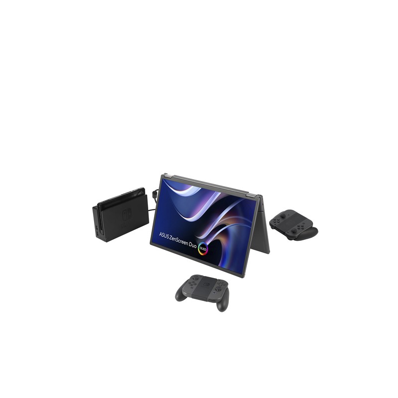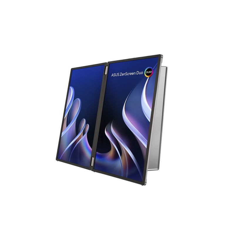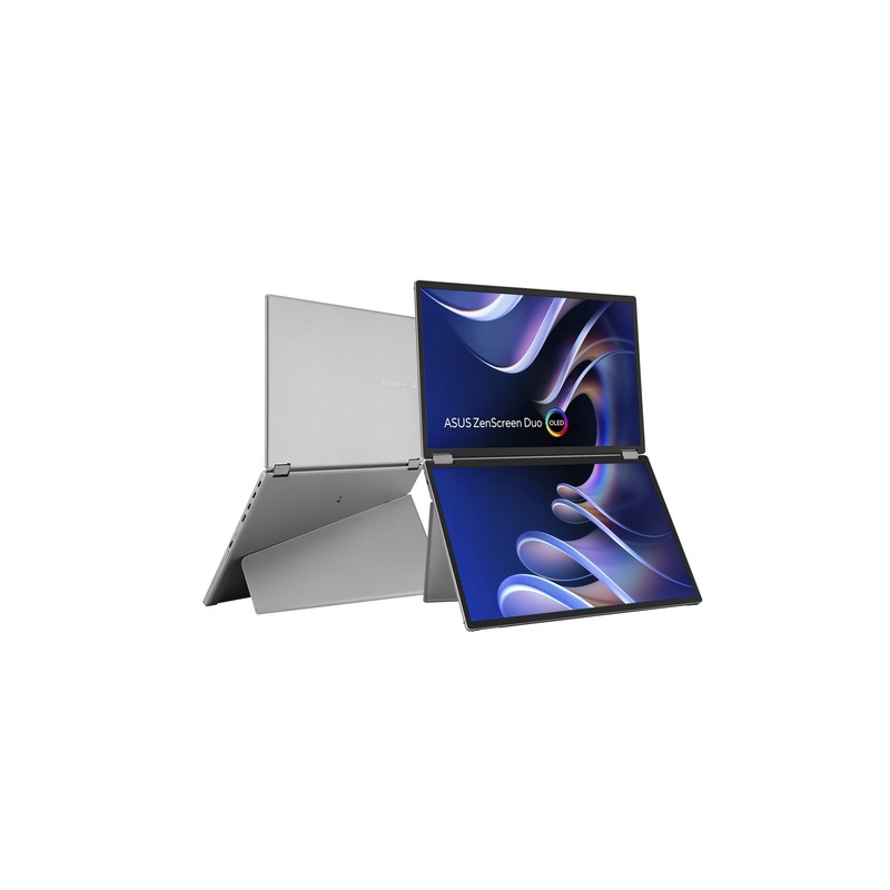 ASUS ZenScreen Duo OLED MQ149CD. Diagonal de la pantalla: 35,6 cm (14"), Resolución de la pantalla: 1920 x 1200 Pixeles, Tipo HD: WUXGA, Tecnología de visualización: OLED, Superficie de la pantalla: Brillo, Tiempo de respuesta: 1 ms, Relación de aspecto nativa: 16:10, Ángulo de visión, horizontal: 176°, Ángulo de visión, vertical: 176°. Color del producto: Plata