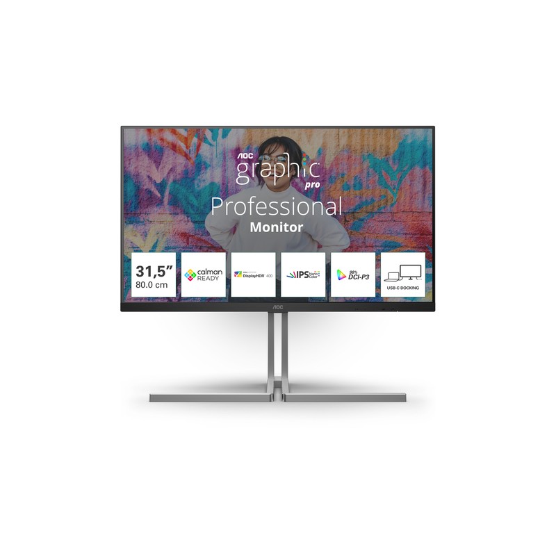 El AOC Graphic Pro U32U3CV proporciona una precisión de colores sobresaliente desde el primer momento, gracias a su calibración por hardware que alcanza Delta E < 2 (sRGB). Ajuste fácilmente la configuración para obtener el máximo rendimiento con la característica Calman Ready. Con una cobertura completa del 100% del espacio de color sRGB y Rec 709, además de un destacado 98% de cobertura del espacio de color DCI P3, está hecho a medida para la edición de gráficos y fotografías y ofrece una calidad superior a la de los monitores estándar. Su precisión con Delta E < 2 garantiza una reproducción cromática precisa que supera la percepción del ojo humano. Mejorado con una pantalla UHD Nano IPS, Vesa DisplayHDR 400, estación de acoplamiento USB-C y un diseño elegante, destaca como la mejor opción para los profesionales.