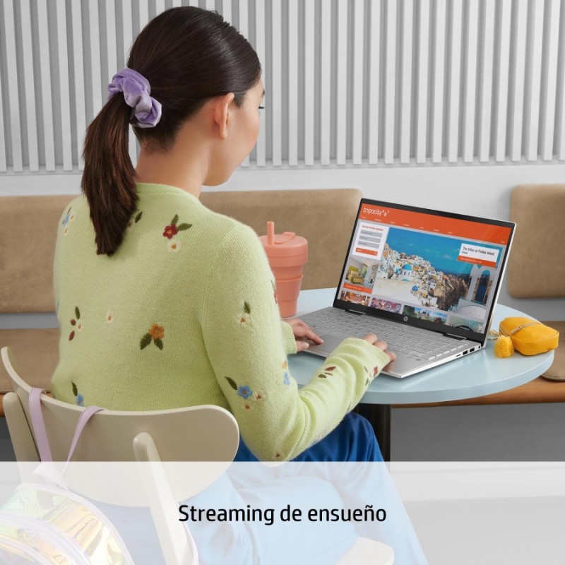 El ordenador 2 en 1 más compacto de HP diseñado para hacer streaming y optimizar el rendimiento El HP Pavilion x360 14 convertible se adapta a ti para que seas productivo desde cualquier ángulo. Haz streaming de tus series favoritas siempre que quieras con la Carga rápida HP[4]. Los altavoces duales con audio de B&O confieren a este portátil la experiencia de sonido y entretenimiento envolvente que deseas. Diseñado pensando en el medio ambiente, el HP Pavilion x360 está fabricado con plásticos sostenibles, reciclados y recuperados del entorno marino[5].