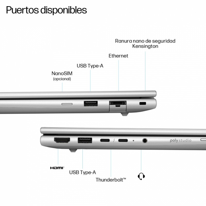 Mejora la productividad y disfruta de nuevas posibilidades con el ordenador con IA HP EliteBook 6 G1a de 14 pulgadas. Con un rendimiento de NPU de hasta 16 TOPS[3], este dispositivo ofrece experiencias de IA innovadoras, una seguridad sólida y una capacidad de gestión sencilla, convirtiéndolo en el dispositivo perfecto para entornos de IT exigentes.