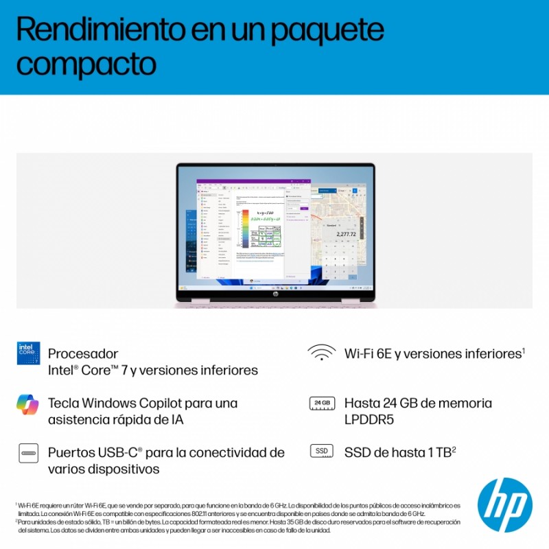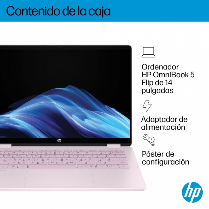 El portátil 2 en 1 HP OmniBook 5 de 14 pulgadas cuenta con una bisagra de 360 grados que se adapta a cómo quieras usarlo, dondequiera que estés. Equipado con un procesador Intel Core™[1] y con puertos y altavoces premium, tiene todo lo que necesitas para completar cualquier tarea.