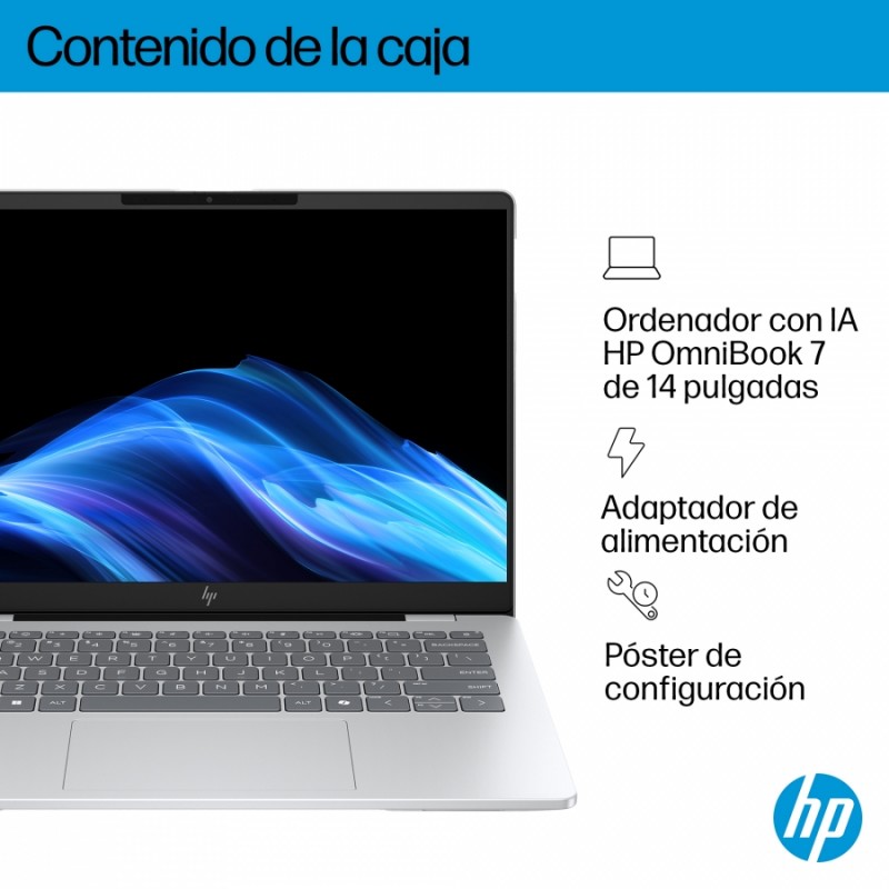 El ordenador con IA HP OmniBook 7 de 14 pulgadas combina un rápido rendimiento con una multitarea fluida, gracias al procesador Intel Core™ Ultra potenciado por IA[1]. Fabricado para soportar condiciones duras, cuenta con un monitor vívido y de alta calidad, con un fácil acceso a la IA gracias a una tecla Copilot[2] integrada y con videollamadas mejoradas por IA para profesionales en continuo movimiento.