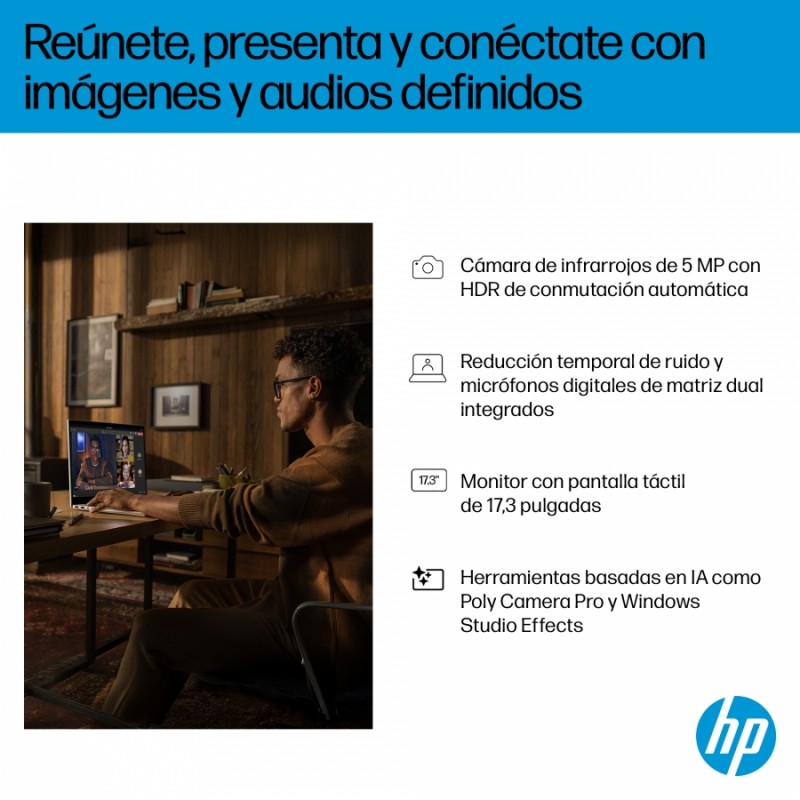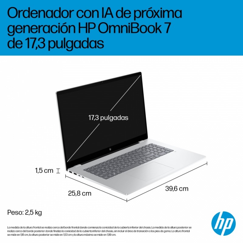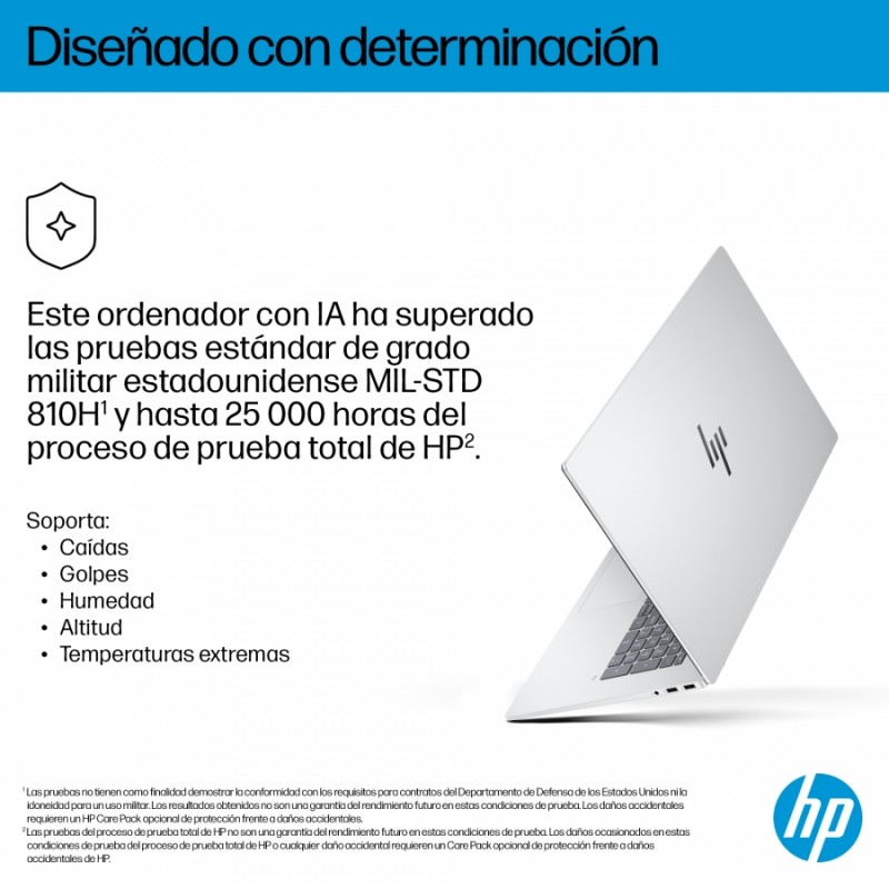 El ordenador con IA de nueva generación HP OmniBook 7 de 17,3 pulgadas, con un monitor táctil de 17,3 pulgadas, se ha diseñado para soportar los exigentes estándares militares[1] y rendir en las condiciones más duras. Con el último procesador Intel Core™ Ultra impulsado por IA[2], también está preparado para el trabajo más duro.