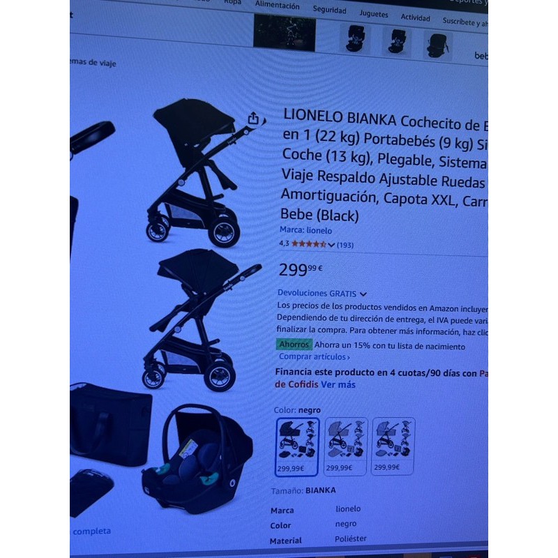 LIONELO BIANKA Cochecito de Bebé 3 en 1 (22 kg) Portabebés (9 kg) Silla de Coche (13 kg), Plegable, Sistema de Viaje Respaldo Ajustable