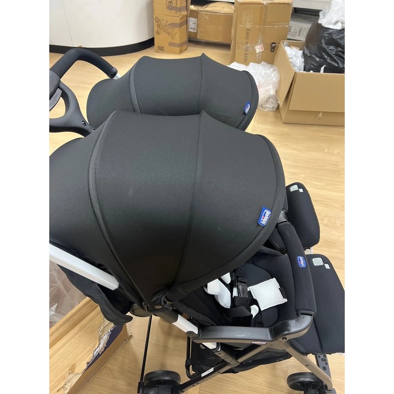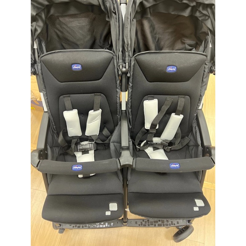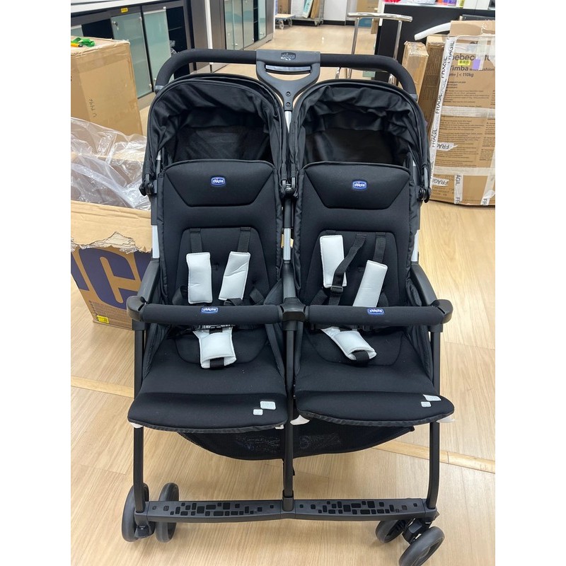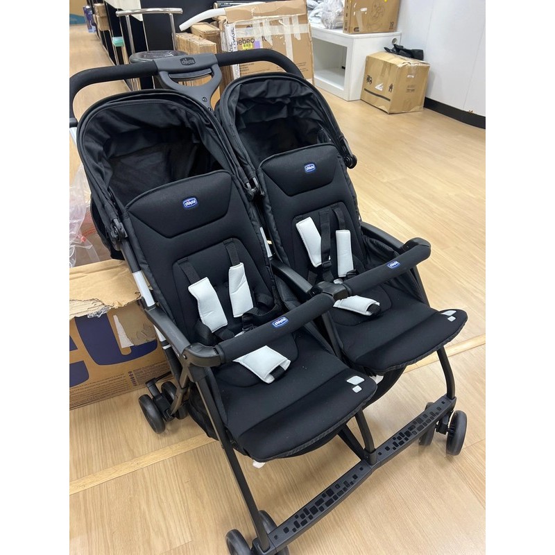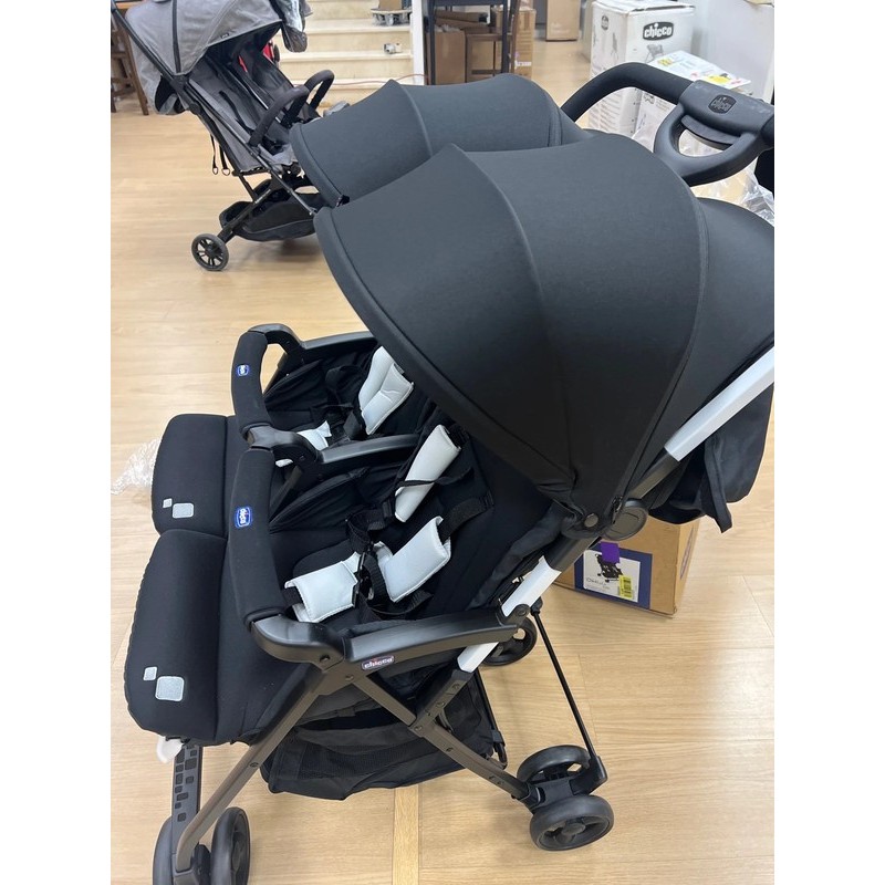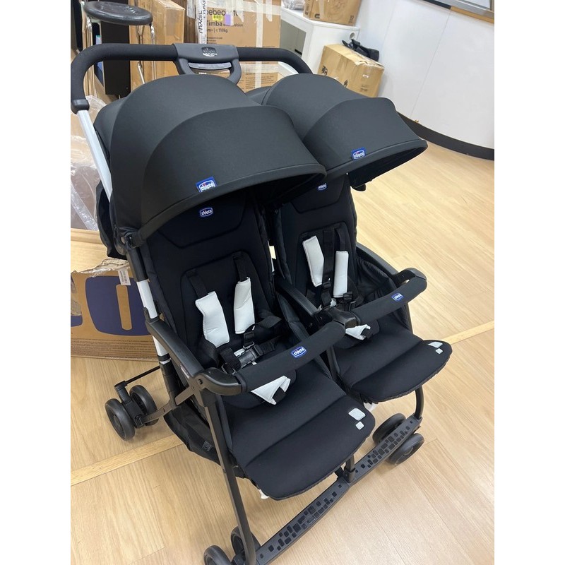 Chicco OHlalà Twin Silla de Paseo Gemelar desde 0 Meses hasta 15 kg para Gemelos y Hermanos, Cochecito Doble Reclinable y Plegable, Ligero, Plegado Compacto, Cubierta Lluvia - Color Negro