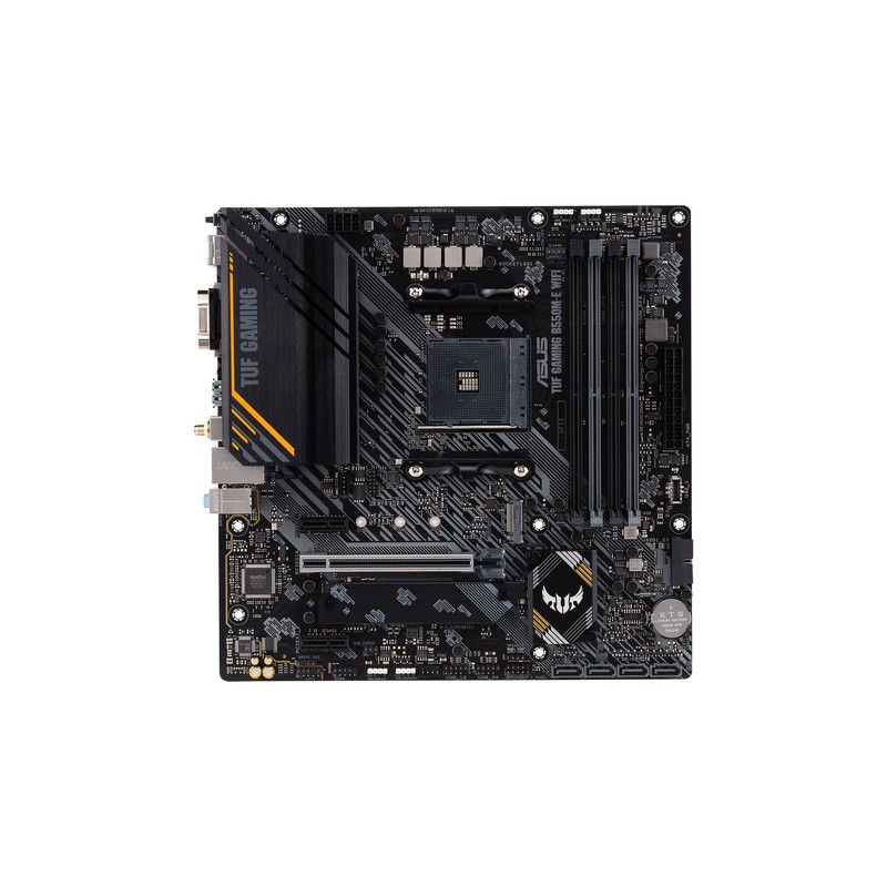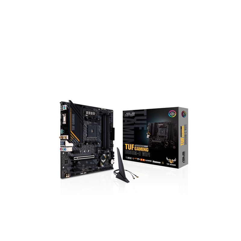 ASUS TUF GAMING B550M-E WIFI. Fabricante de procesador: AMD, Socket de procesador: Zócalo AM4, Procesador compatible: AMD Ryzen™ 3, AMD Ryzen™ 5, AMD Ryzen™ 7, 3rd Generation AMD Ryzen™ 9, AMD Ryzen 9 5th Gen. tipos de memoria compatibles: DDR4-SDRAM, Memoria interna máxima: 128 GB, Tipo de ranuras de memoria: DIMM. Interfaces de disco de almacenamiento soportados: M.2, PCI Express 3.0, SATA III, Tipos de unidades de almacenamiento admitidas: HDD & SSD, Niveles RAID: 0, 1, 10. Máxima resolución: 3840 x 2160 Pixeles. Conector USB: USB tipo A