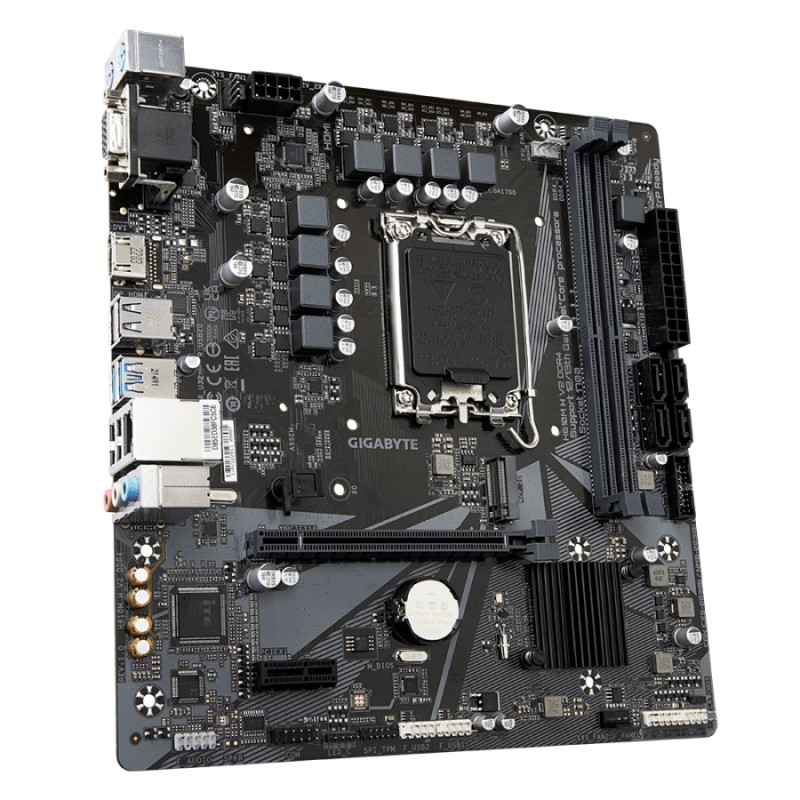 Gigabyte H610M H V2 DDR4 (rev. 1.0). Fabricante de procesador: Intel, Socket de procesador: LGA 1700, Procesador compatible: Intel® Celeron®, Intel® Core™ i3, Intel® Core™ i5, Intel® Core™ i7, Intel® Core™ i9,.... tipos de memoria compatibles: DDR4-SDRAM, Memoria interna máxima: 64 GB, Tipo de ranuras de memoria: DIMM. Interfaces de disco de almacenamiento soportados: M.2, SATA III, Tipos de unidades de almacenamiento admitidas: HDD & SSD. Graphics chipset: Intel, Adaptador gráfico: HD Graphics, Máxima resolución: 4096 x 2160 Pixeles. Tipo de interfaz ethernet: Ethernet rápido, Gigabit Ethernet