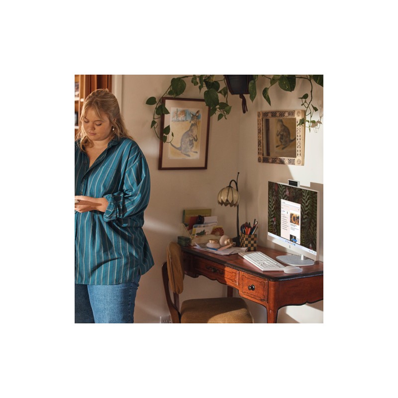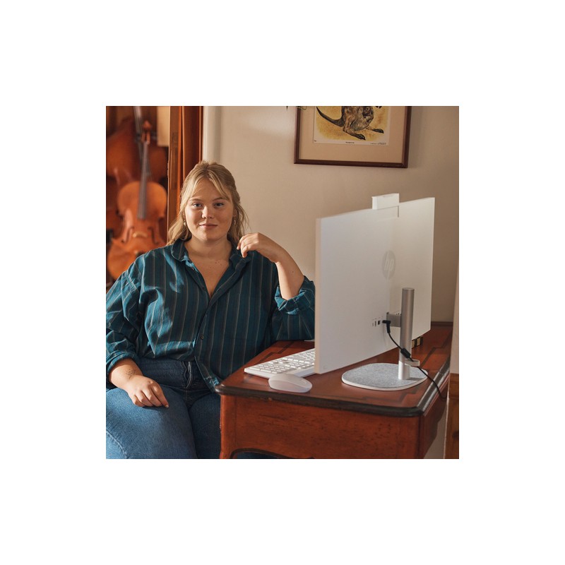El sobremesa All-in-One HP de 27" te permite hacer más con menos. Fabricado de manera sostenible con plásticos destinados a acabar en los océanos y plásticos reciclados postconsumo[1]. Además, cuenta con certificación EPEAT Gold y ENERGY STAR[2]. Gracias a su potente procesador, la memoria ampliada y las funciones multitarea mejoradas, no tendrás que renunciar a un gran rendimiento.